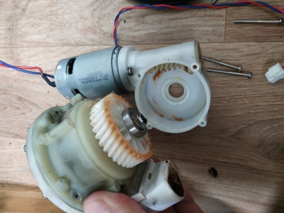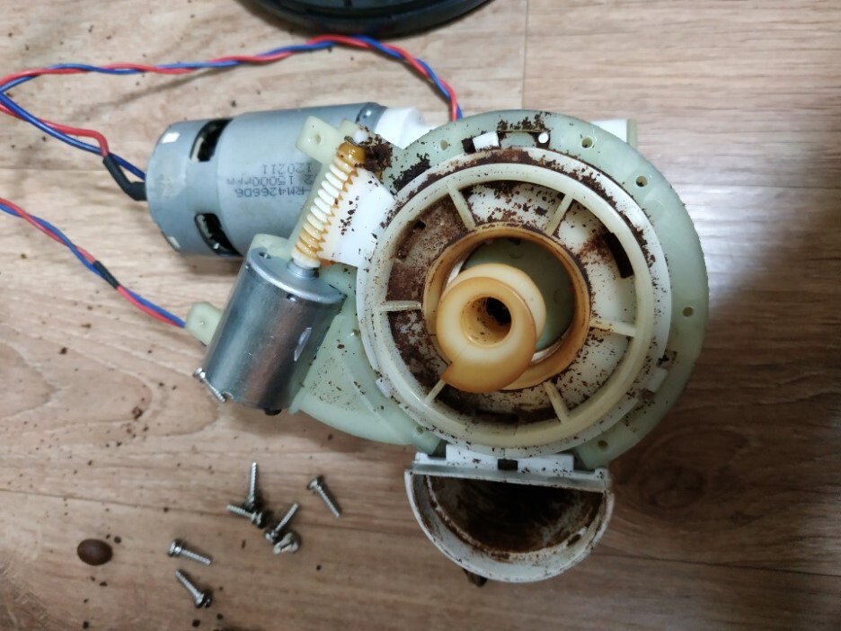 모터 두개의 전원선이 메인보드에 연결되어있다.